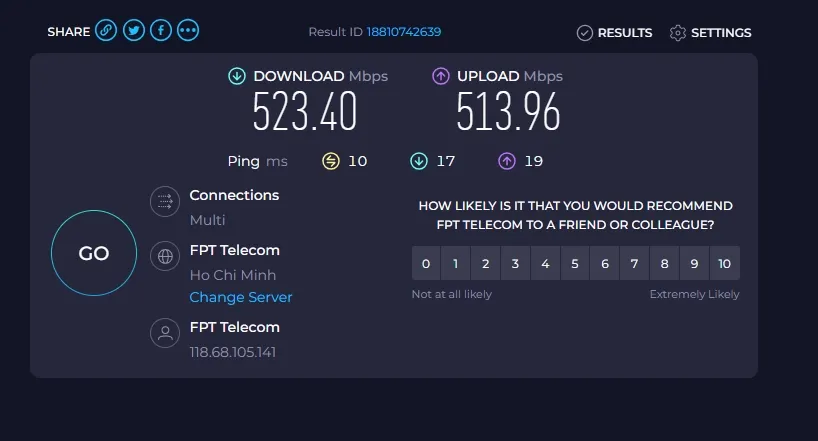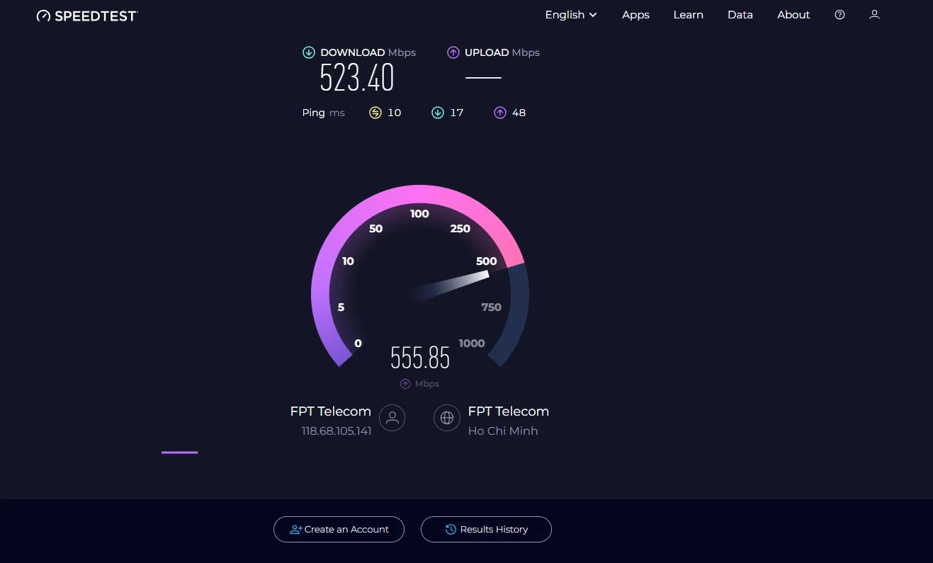 You can check this indicator in the Speedtest service. It allows you to quickly assess the download speed, latency, and overall connection quality.