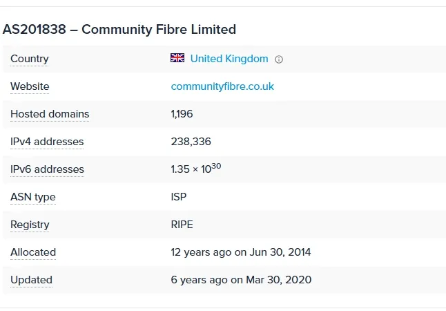 ASN, in turn, is just a unique identifier for a group of IP networks, for example, AS201838. The ASN number itself doesn't tell the user anything. To understand which organization or provider the ASN belongs to, it needs to be deciphered. This can be done through specialized databases, for example, in the IPinfo service. The search format is AS{ASN digits}. An alternative is to use IPQualityScore, which automatically decodes the ASN and shows the network owner.