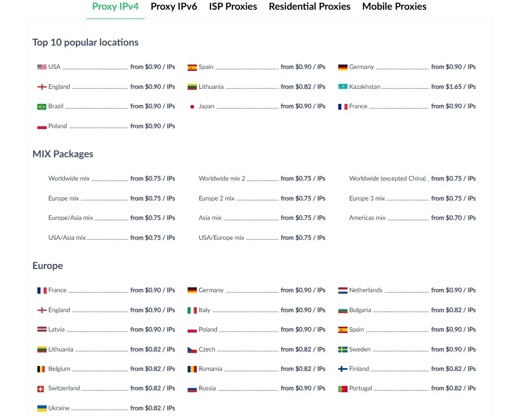 The cost of Ukrainian proxy servers depends on their type, rental period, and the amount of included traffic. As with technical characteristics, it is important to find a balance here: cheap server solutions are good for mass use, and expensive mobile solutions are good for delicate work with accounts.