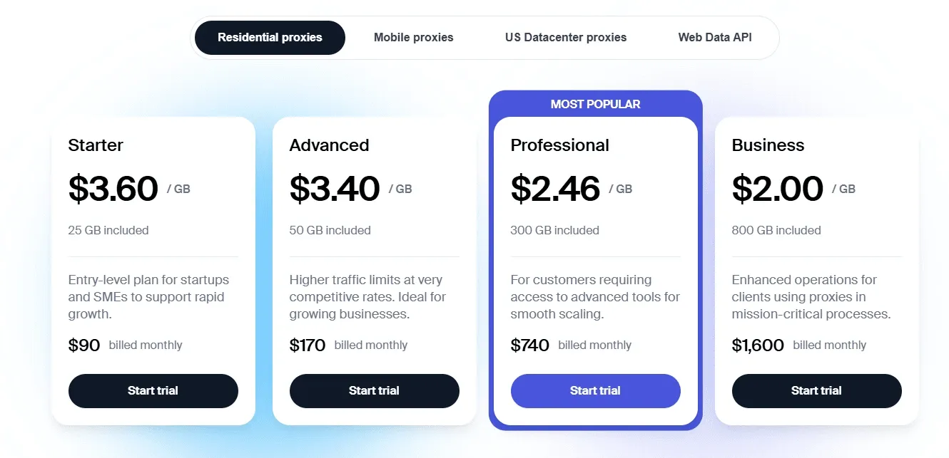 Bright Data is a giant in the global proxy market with the largest pool of Ukrainian IP addresses. This is a premium solution aimed at large businesses and large-scale data collection projects. The service offers advanced tools for rotation and bypassing the most complex protection systems, but the cost is higher than the market average.