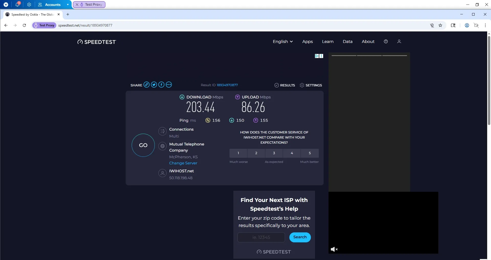 6. Check the proxy's connection speed and country compliance using an independent service.