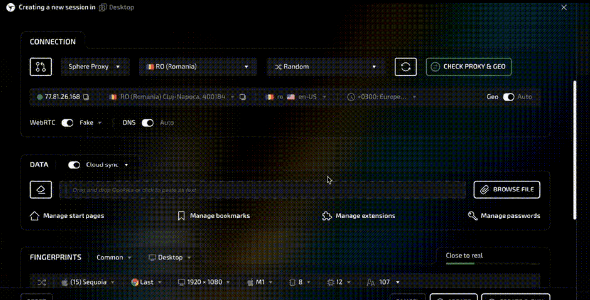 Linken Sphere has integrated its own residential proxies, fully built into the browser. Sphere Proxy connects in a few clicks and does not require third-party services or manual configuration.