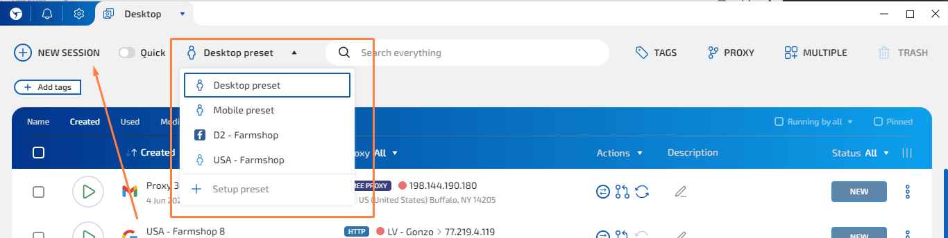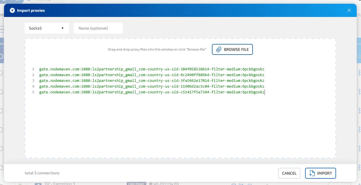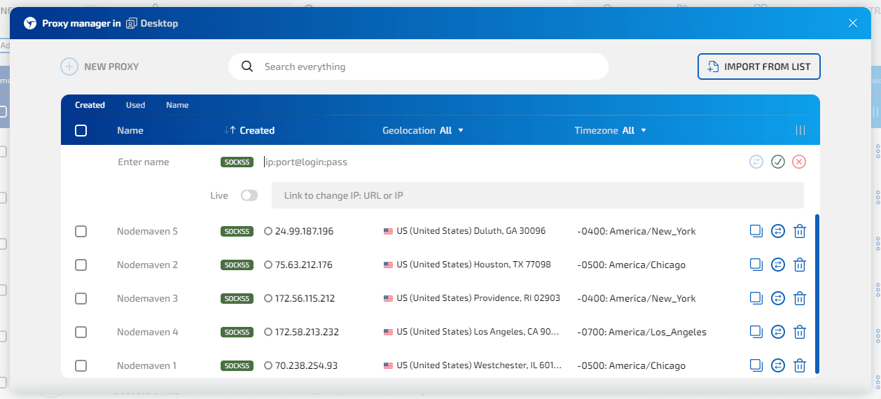 Если нужно подключить большую пачку прокси, проще всего использовать Proxy Manager внутри Sphere. Там можно импортировать сразу список: выбрать протокол, вставить прокси строками или загрузить файл. Привязка к профилям — в пару кликов.
